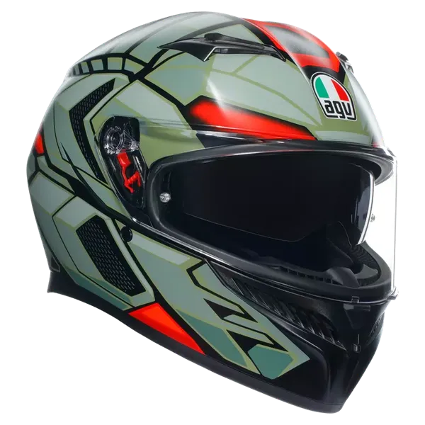 K3 Motorcycle Helmet - Decept Matt Black/Green/Red