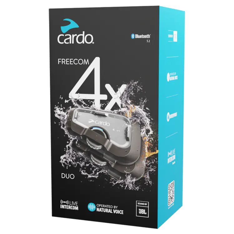 Stay connected and enjoy rich, immersive sound with the Cardo FREECOM 4X. This compact Bluetooth communicator links up to 4 riders over a 1.2 km range using Live Bluetooth Intercom with self-healing technology. Natural Voice Operation enables hands-free control, while 40mm JBL speakers deliver clear, powerful audio on every ride. Seamlessly connects with any other major brand.