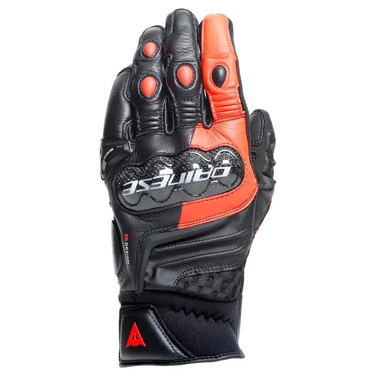 Leather Motorcycle Gloves - Carbon 4 Short Black/Fluo-Red