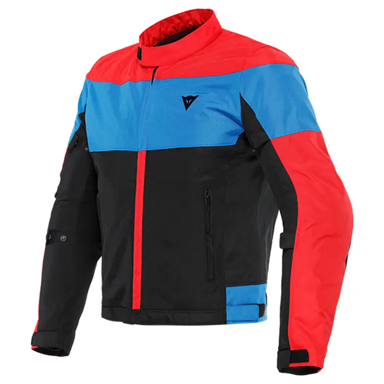 Summer Motorcycle Jacket - Elettrica Tex Black/Lava-Red/Light-Blue
