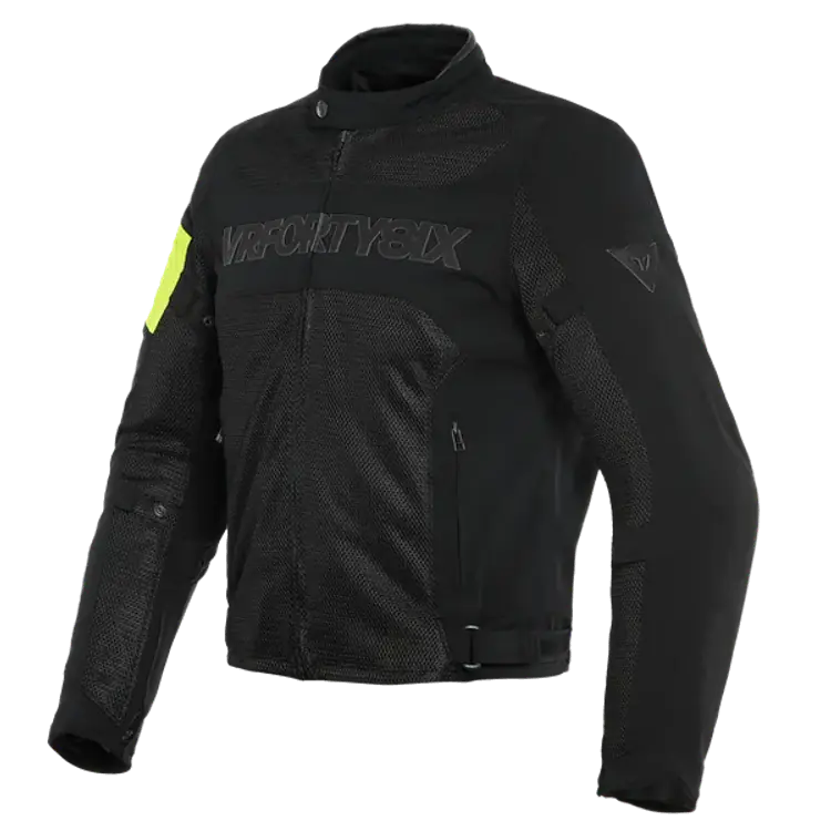 A lightweight, ventilated motorcycle jacket with Valentino Rossi-inspired styling, composite protection, and a removable windproof liner for changing weather.