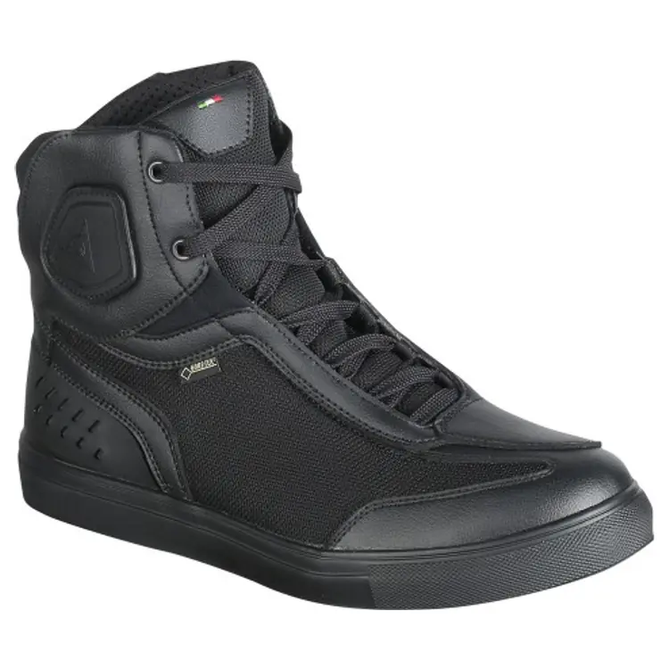 All-season motorcycle shoes with GORE-TEX waterproofing, reinforced heel and ankle protection, and durable polyamide construction.