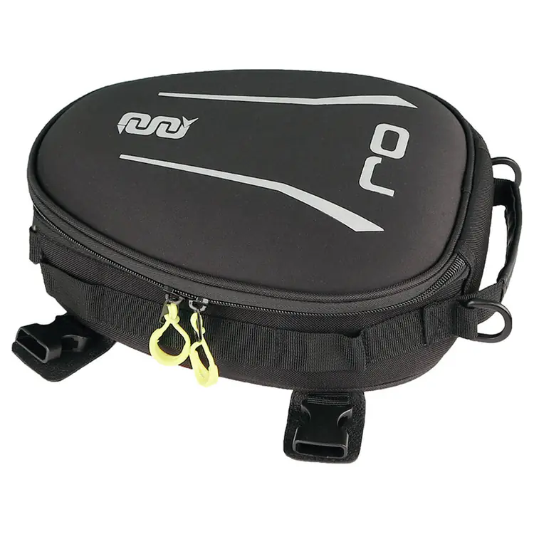 This universal motorcycle tail bag is preformed for structure and features a quick-release strap system for secure and easy mounting. Made from high-tenacity polyester with a water-repellent finish, it stands up to road conditions while keeping contents protected. The PU anti-slip base ensures stability even at high speeds. A laminated reflective insert improves nighttime visibility, while the internal mesh pocket helps organize your items. It includes a carry handle, adjustable shoulder strap, and a rain cover for full practicality in all weather conditions.