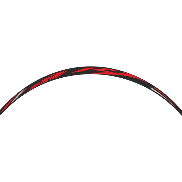 Crescent-shaped rim strips made from reflective and/or fluorescent PVC, offering both custom styling and enhanced visibility for your motorcycle. The kit includes everything needed to apply strips to both sides of two rims, where each side features two stickers, totaling four per wheel, making it easy to upgrade your wheels with a bold and functional detail. Each strip is 365.3 mm in length, precision-cut to follow the curve of the rim, ensuring a smooth and clean application. These durable accents are built to withstand the elements while adding a distinctive touch to your bike’s look, day or night.